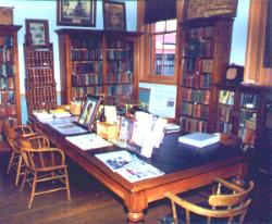Obviously the Athenaeum was a library, and as is shown in the top picture, there is still in its original state a magnificent library table complete with the newspaper holder, and the original chairs. The shelves and bookcases are also original, as too the books. There are some very special books, including signature books, Chiltern's own authors books, and  a set of Britanica Encyclopedia 1898.