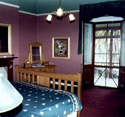 The Primrose Room offers magnificent comfort with a Queen size bed, and an adjoining antique ensuite furnished in relaxing soft gold and blue tonings. Each room accesses private balcony / verandah affording picturesque views.