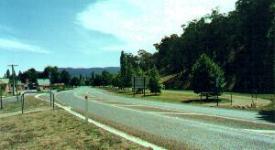 From Porepunkah to Myrtleford Page 2 Having peddled past the Boynton Winery, you then peddle past the Walnut Farm, and then past the above Tobacco Farm, with its luscious green coloured crop standing out from the dryer greens of the surrounds. Above a father with his young son peddles past the tobacco farmer on his tractor. There are three toilets currently built on the Rail Trail. They are both identical being built in the shape of a steam train pulling a caboose. Above you can see the Eurobin Station, with funnel at the top of the shelter representing the steam engine. These stations have rest areas, clean toilets and drinking water from the water tanks. On the ride into Ovens the rail trail passes hop fields, as in the photo above, and passing the Hop Factory you cross the road above right, and pass over a series of small bridges. The Rail Trail enters Myrtleford from the south behind some residential houses, and then crosses the main Ovens Highway near the old Butter Factory, opposite Reform Hill, photo above left. The trail then passes through the Jones Reserve, a lovely picnic spot, photo above right, and then the trail transfers to the streets of Myrtleford. Follow the signs. The Official start Finish of the Trail is behind the Tourist Information Centre, the Ponderosa Cabin.