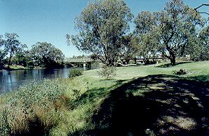 Firstly the aboriginal walk has a display of didgeridoos, and an explanation of their manufacture and use. Secondly in the background you can see the Murray River. It is at this point that the river hits a " T Intersection," and veers right to Albury as the Murray River, and veers left to Wodonga as the Wodonga Creek.