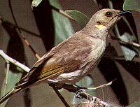 Above left Regent Honeyeater, centre Fuscous Honeyeater, and right Yellow Tufted Honeyeater.
